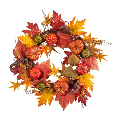 Northlight Dahlia and Pumpkin Fall Artificial Floral Wreath, 22-Inch