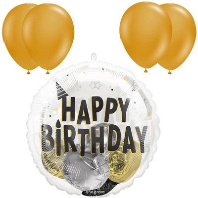 LoonBalloon 20 Inch Black & Gold Large Birthday Balloon with 4 latex balloons- Elegant & Festive