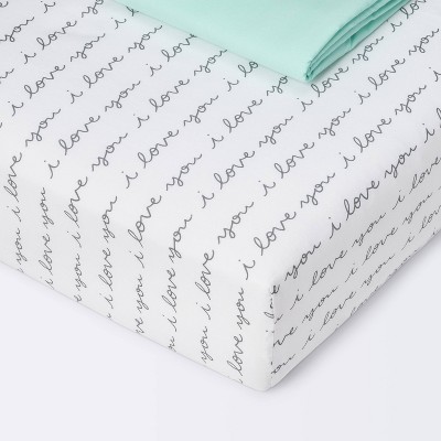 Crib Fitted Sheets I Love You and Mint Solid - Cloud Island™ - Gray/Mint - 2pk