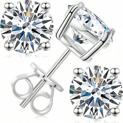 SmallRig 6-Pair Cubic Zirconia Stud Earrings, 18K White Gold Plated 4-Prong Round for Women