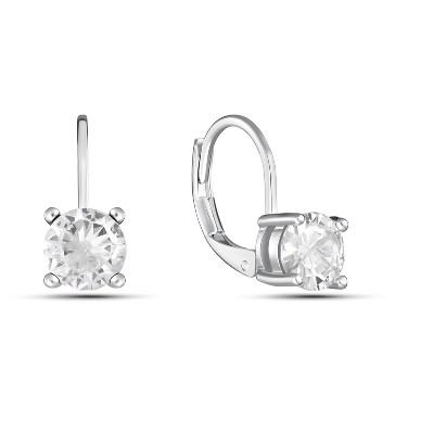 Bella Silver Sterling Silver Round CZ Outline w/ Center Cut-Out Leaf Dangle Earrings - Silver