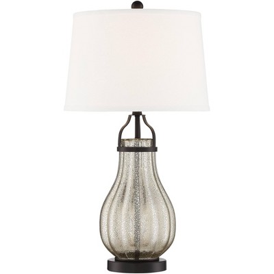 Franklin Iron Works Arian Rustic Farmhouse Table Lamp 27 1/2" Tall Oil Rubbed Bronze Fluted Mercury Glass White Drum Shade for Bedroom Living Room