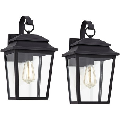 John Timberland Bellis Verde Modern Outdoor Wall Light Fixtures Set of 2 Textured Black Lantern Frame 15 1/4" Clear Glass for Post Exterior
