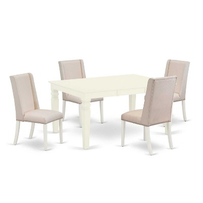 HomeStock 5-Piece Linen White Finish Solid Wood Top Dining table with 4 Chairs