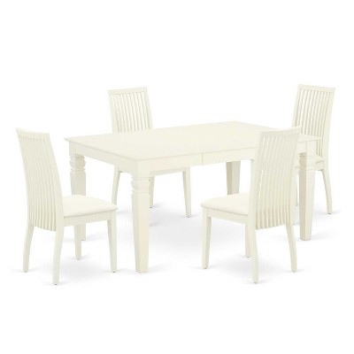 HomeStock 5-Pc Linen White Finish Solid Wood Top Dining table with 4 Chairs