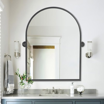 24x36 In. Aluminum Framed Rounded Rectangle Bathroom Wall Mirror, Hangs Horizontally or Vertically