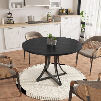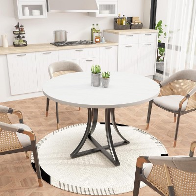 Modern Farmhouse Round Dining Table for 4-6 – 47 Inch Circle Table – Sturdy Fluted Metal Pedestal Base – Space-Saving Design for Kitchen, Dining Room