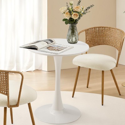Okak 23.6/31.5in Round Dining Table Kitchen Table with Steel Tulip Base Round Kitchen Table for Dining Room