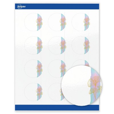 Avery Round Labels, Floral Design, 2" Diameter, 120 Total, Glossy, Watercolors with Gold Ginkgo Leaves