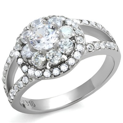 Slickblue Women's Silver Stainless Steel Ring, Clear CZ Floral Halo Design, Sparkling Band, Lightweight, Sizes 5–10
