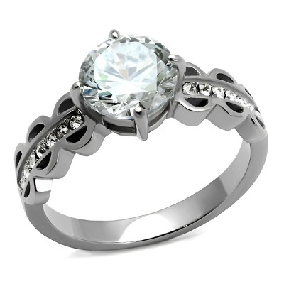 Slickblue Women’s Polished Stainless Steel Ring with Clear CZ, Round Stone, Wedding Set, Size 7