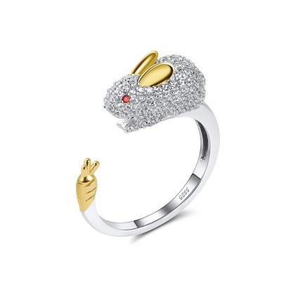 Bunny Carrot Wrap Ring for Women Sterling Silver Zirconia Ginger Lyne Collection