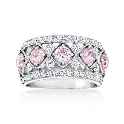 Ross-Simons 0.80 ct. t.w. CZ and .70 ct. t.w. Simulated Pink Sapphire Ring in Sterling Silver