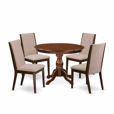 HomeStock 5-Piece Round Mahogany Finish Solid Wood Top Dining Table with 4-Parson Chair