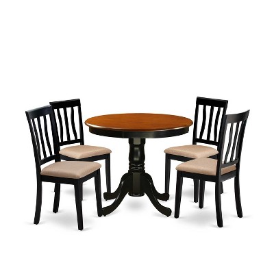 HomeStock 5-Piece Round Black Finish Solid Wood Top Dining Table with 4 Parson Chair