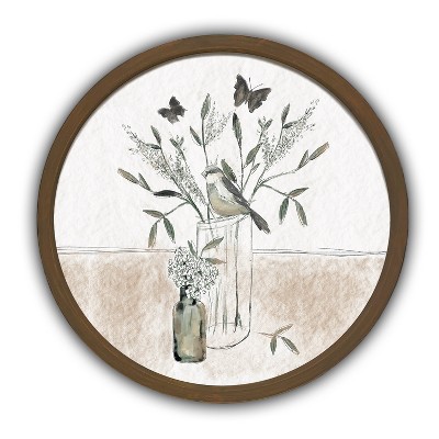Creative Products Bird Butterflies Vase Sketch 20 x 20 Round Framed Print