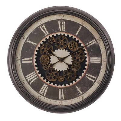 Metal Gear Wall Clock Black - Olivia & May: Industrial Style, Exposed Mechanism, 32" Diameter