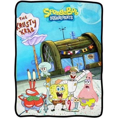 SpongeBob Classic Character Group at Krusty Krab Fleece Throw Blanket 46" X 60"