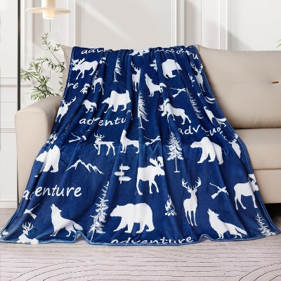 Lomsoe Adventure with Bear Deer Wolf Print Throw Blanket, Winter Holiday Bed Blanket Super Soft Flannel Blanket Cozy Throw Blanket for Couch