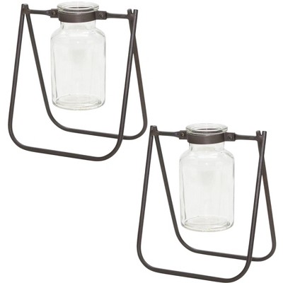 Decorative Ceramic Vase Set Of 2 Blue and White 10 Inch Vases for Modern Home Decor By Melrose