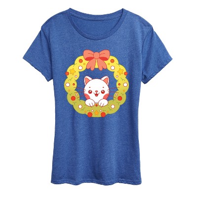 Women's - Instant Message - Chibi Cat Christmas Wreath Short Sleeve Graphic T-Shirt