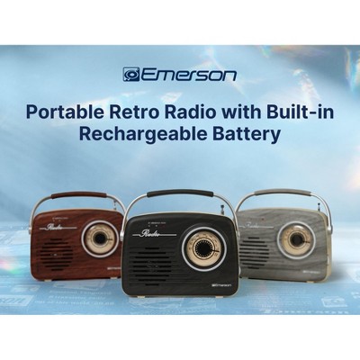 Emerson EAS-3002 Portable Retro Radio with Built-in Rechargable Battery, Espresso