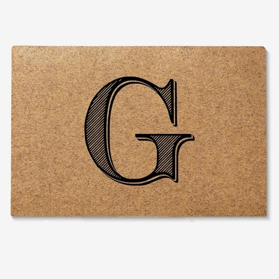 Personalization Mall Noir Initial 18x27 Synthetic Coir Doormat