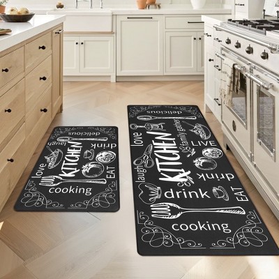 HEBE 2-Piece Kitchen Rugs Set, Non-Slip Waterproof Farmhouse Floor Mats