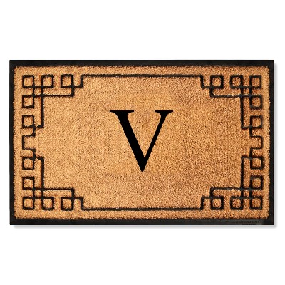 A1HC Bordered Designed Natural Coir & Rubber Monogrammed Doormat, Heavy Duty, Non-Slip Entry Mat