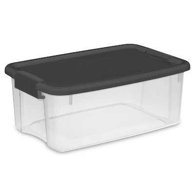 Sterilite 18qt Ultra Clear Latch Box Clear Base Flat Gray Lid and Latches: Portable Stackable Storage Tote with Handles