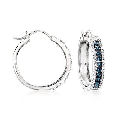 Ross-Simons 0.50 ct. t.w. White and Blue Diamond Hoop Earrings in Sterling Silver