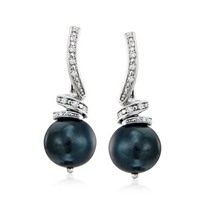 Ross-Simons Black Enamel and Diamond Hoop Earrings in 18kt Gold Over Sterling