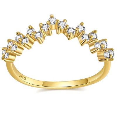 Viviana Half Eternity Ring for Women Sterling Silver CZ Anniversary Band Stackable Chevron Curve by Ginger Lyne