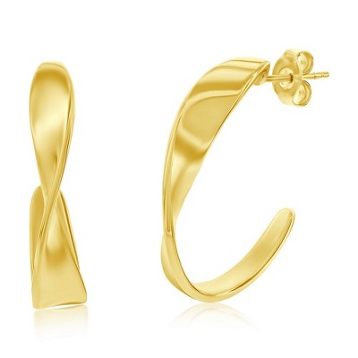 Bella Silver Sterling Silver Twisted Hoop Earrings - Gold Plated - Gold