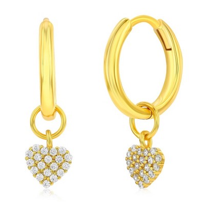 Bella Silver Sterling Silver 11MM Center Marquise CZ Huggie Hoop Earrings - Gold Plated - Gold