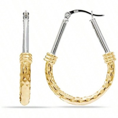 Sterling Silver Hoop Earrings, Design, Diamond - Cut Textured, Women's Oval Drop Earrings