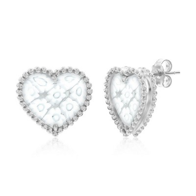 Millefiori di Murano Sterling Silver, Venetian Murano Heart Earrings - White - White