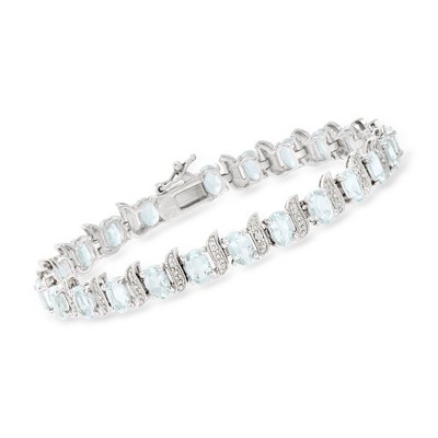 Ross-Simons 9.50 ct. t.w. Aquamarine Tennis Bracelet With Diamond Accents in Sterling Silver