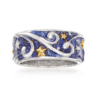 Ross-Simons Glittery Blue Enamel Celestial Ring in 2-Tone Sterling Silver