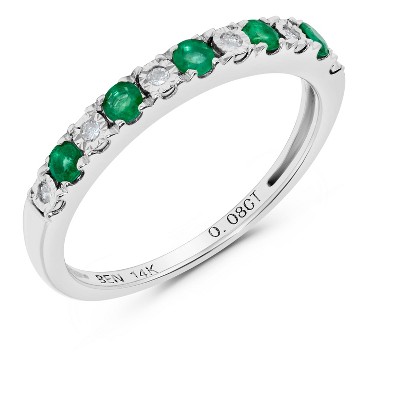H.J. Namdar 0.63 ct tw Prong Set Round Diamond & Emerald Band Ring 14K White Gold Natural Emeralds and Diamonds Size 6