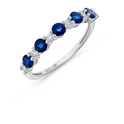H.J. Namdar 0.8 ct tw Prong Set Round Diamond & Sapphire Band Ring 14K White Gold Natural Sapphires and Diamonds Size 6