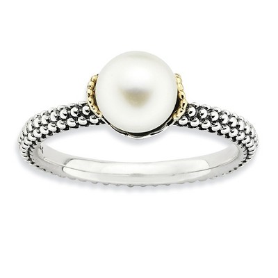 Black Bow Jewelry White FW Cultured Pearl, Sterling Silver & 14k Gold Accent Stack Ring