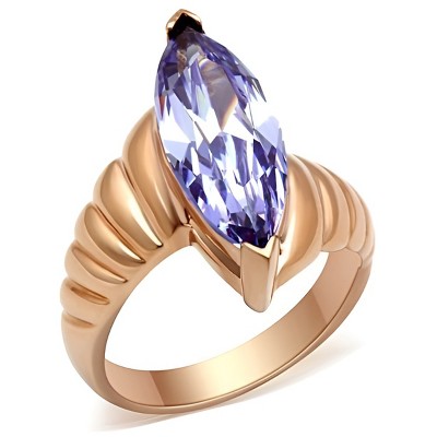 Slickblue Rose Gold Brass Ring with Light Amethyst CZ, IP Plating - Beautiful Solitaire Marquise Ring, Size 5-10