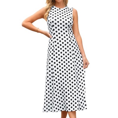 INSPIRE CHIC Women's Polka Dots Summer Sleeveless Vintage Crew Neck Elegant A-Line Maxi Dresses