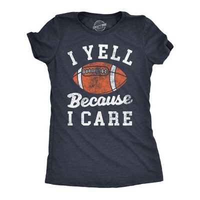 Womens I Yell Because I Care T Shirt Funny Passionate Football Fan Joke Tee for Ladies - Crazy Dog Women's T Shirt For Football Season