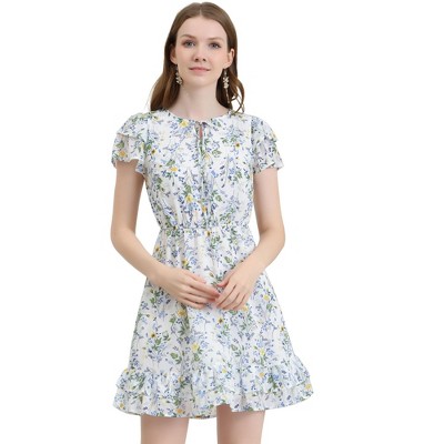 INSPIRE CHIC Women's Ruffle Sleeve Self-Tie V Neck Mini A-Line Floral Dress