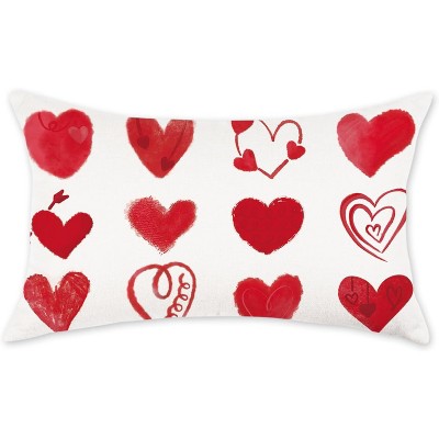 Lomsoe 1pc Valentine's Day Linen Pillow Cover Red Pink Heart Decoration Valentine Lumbar Throw Cushion Case for Bedroom Sofa Couch.