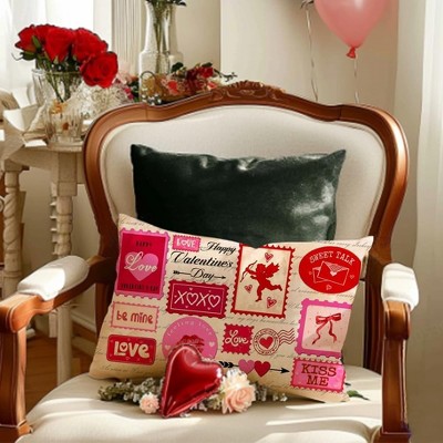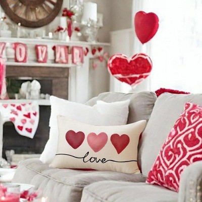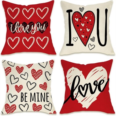 Lomsoe 1pc Linen Valentines Pillow Covers Red Pink Hearts Love Throw Decorative Outdoor Cushion Cases for Valentines Decor Decorations.