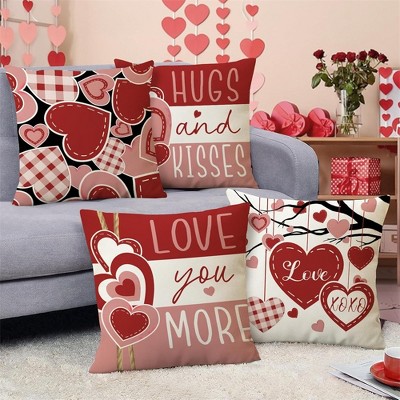 Lomsoe 4PCS Valentines Day Decorative Throw Pillow Covers,Red Pink Love Heart Plaid Pillowcase,Anniversary Wedding Sofa Couch.