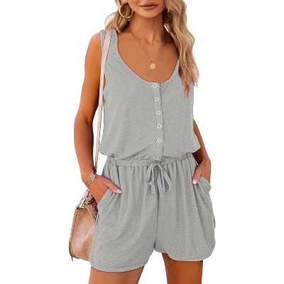 Imily Bela Womens Sleeveless Jumpsuit with Pockets Adjustable Waist and Scoop Neck Summer Romper